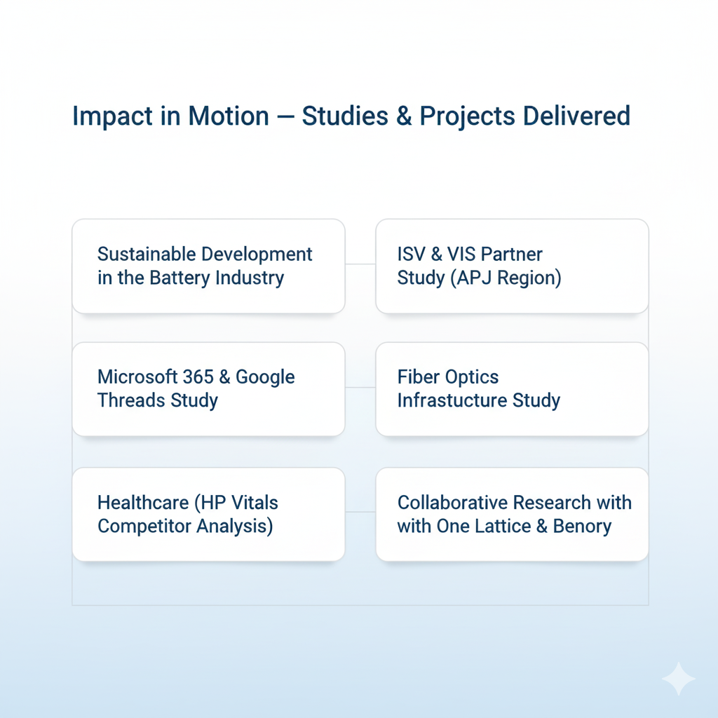 We’ve successfully delivered Expert Consultations totaling over 5.5+ hours per session across 65+ client engagements, ensuring every project receives actionable, verified insights. Operating across India, APAC, Europe, the UK, and the US, Vérifix Connect continues to grow as a trusted partner for research and strategy support worldwide.
