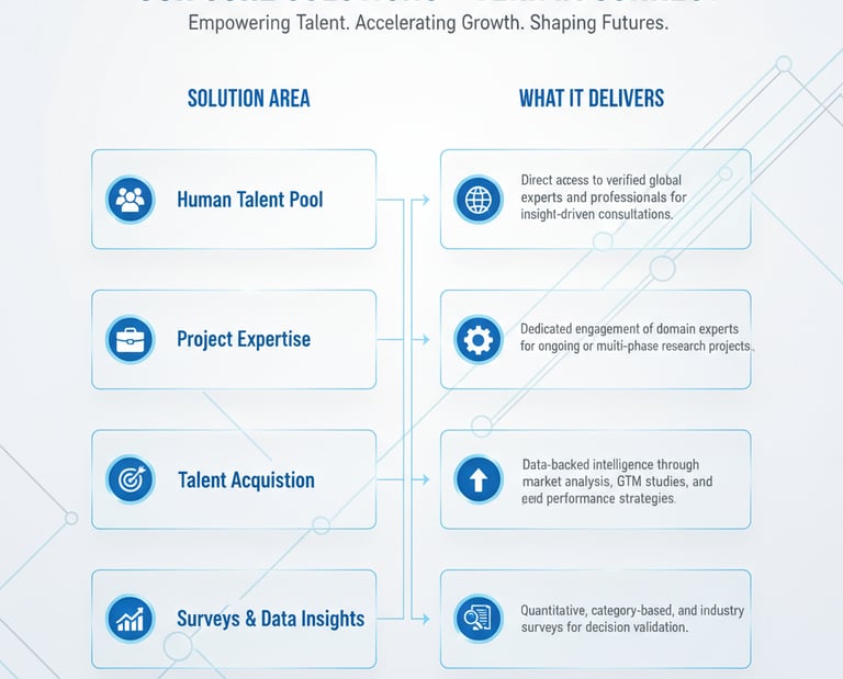 Whether you’re conducting a strategic study, validating a market hypothesis, or exploring a new vertical, our expert network ensures you gain practical, data-backed perspectives that move your project forward.