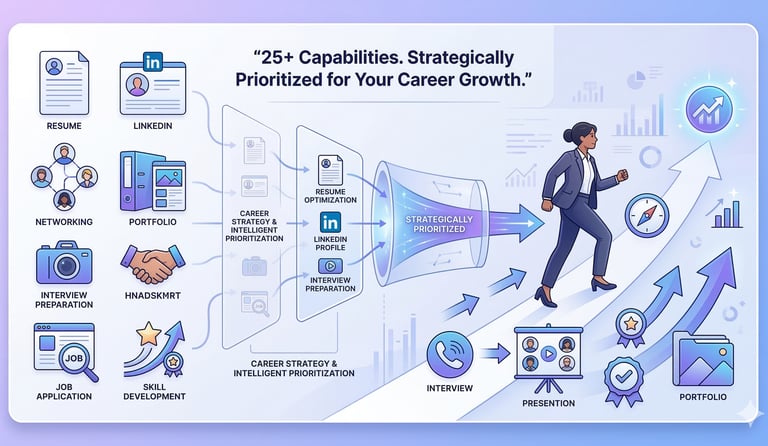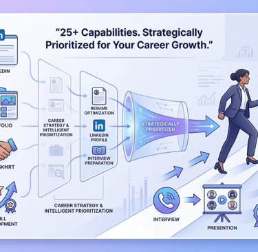 Instead of isolated coaching sessions, the Ultimate Career Architect program combines career strategy, professional branding, interview mastery, and proactive job execution into one integrated system.